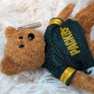 Ty Beanie Baby Fuzz The Bear Retired Vintage Collectible with Green Bay Packers Jersey Shirt