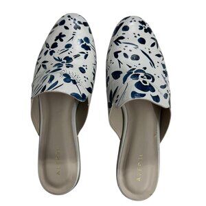 Alepel White & Blue Leather Hand Painted Floral Slide Sandals Mules Size 8