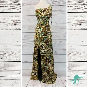 Keywords- tiger. Leopard. Animal, turquoise, prom, formal, gown, carole baskin