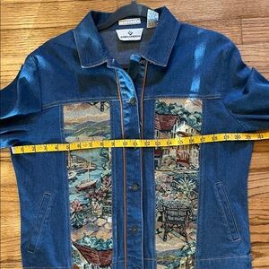 Erin London Boho Jean Jacket with Baroque Tapestry Panels - Vintage