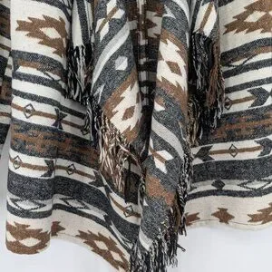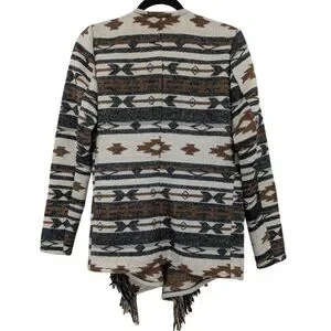 Southwestern Aztec Fringe Cardigan Women Size S Drape Rustic Boho Western Cozy