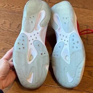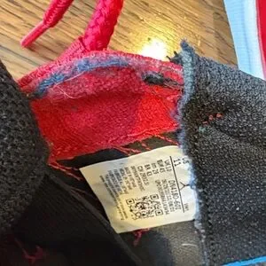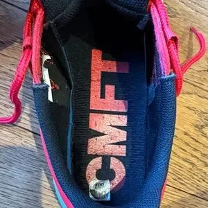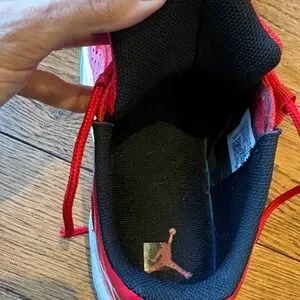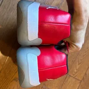 Gorgeous combo of red fabric and flashy patent leather. We gifted these to our son and he barely wore them—truly like new!! While I don’t have the original box, I always ship very securely to protect the product. Smoke free and pet free home.