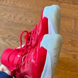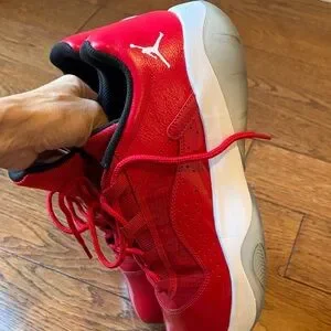 Nike Air Jordan 11 Mid Top sneakers in size 11. This Nike shoe features a classic red colorway and belongs to the Air Jordan product line. With a mid-top shaft style, these athletic shoes are designed for men and showcase the iconic Michael Jordan logo. These sneakers are a hot release that combine style and functionality for a fashionable and comfortable footwear option.