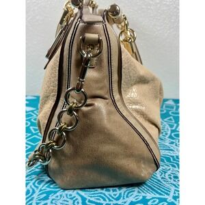 COACH Satchel Purse Beige Leather Embossed Chain Detail Handbag Dust bag