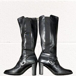 Adrienne Vittadini Tall Black Leather Boots with Buckle Embellishment Size 9