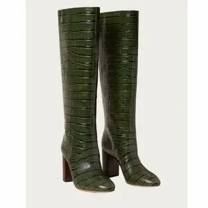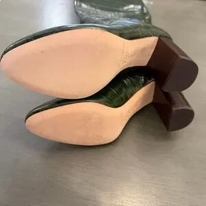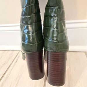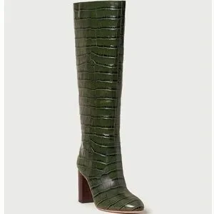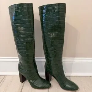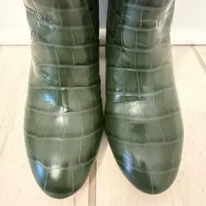 Loeffler Randall Tall Goldy Leather Croc Forest Green Heel Knee Boot Pull On 6