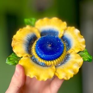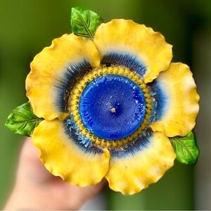 VTG 3D Textured Cottagecore Floral Farmhouse Whimsical Garden Tealight Holder