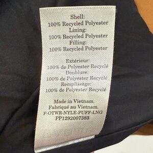 Zipper and buttons at the front. Drawstring at the waist to cinch. Hidden cuffs to keep the cold out.