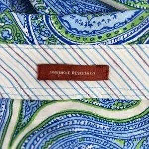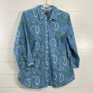 Talbots Shirt Womens 14W Blue Green Paisley Wrinkle Resistant Blouse Cotton