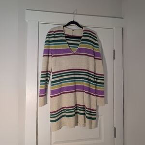 Free People Striped V-Neck Sweater Dress Size M