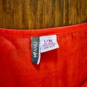 This ANU boutique Women's Tunic Blouse features intricate embroidery on the front, back and shoulders of this coral pink top. The v neck, balloon sleeves and long flowy tunic style give it a chic boho stye. Made of lightweight rayon fabric, this relaxed-fit top is perfect for travel, parties, or casual wear during the summer and spring seasons. The size is L/XL, making it suitable for a comfortable fit.