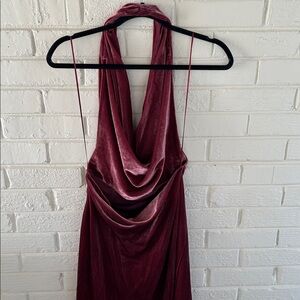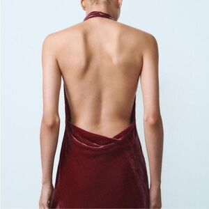 NWOT Zara Raspberry Pink Velvet Maxi Dress Halter Neck Open Back Size XS
