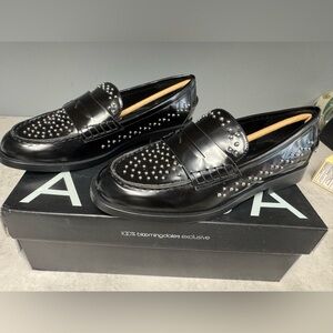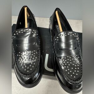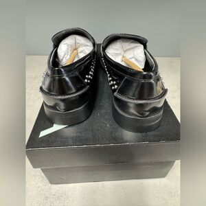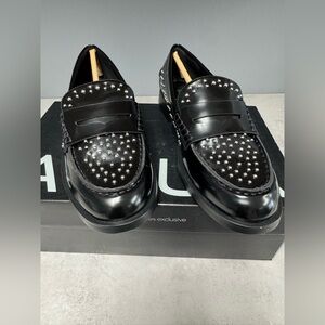 Elevate your style with these sleek black studded loafers. Perfect for any occasion, these shoes offer both comfort and a bold fashion statement.