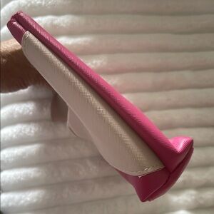 Chic and stylish, this Elizabeth Arden clutch features a striking pink and cream design. Perfect for adding a touch of elegance to any outfit.
