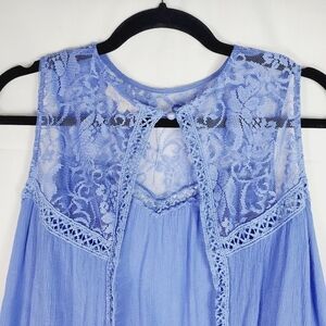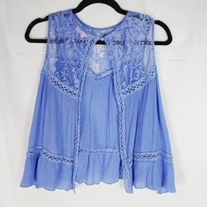 Altar'd State lace and crochet open back sleeveless shirt periwinkle Size Small