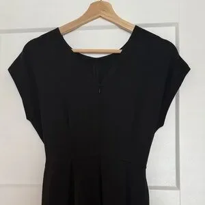 This elegant black jumpsuit is perfect for any occasion. Its sleek design offers a timeless look that is both stylish and versatile. Worn once for work.
