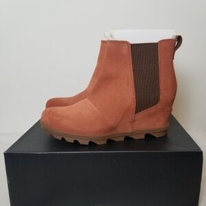 Sorel Joan Of Arctic Wedge 11 Chelsea Rust Orange Brown Suade Ankle Boots
