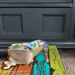 Vibrant floral design with a bold platform. Perfect for adding flair to any outfit. Comfortable and stylish.