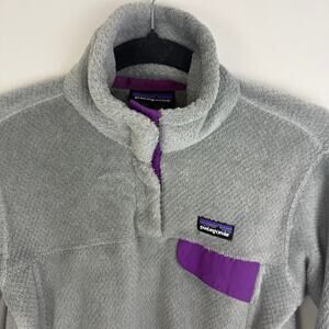Patagonia Womens Fleece Retool Quarter Snap Gray/Purple Cozy Sweatshirt Small