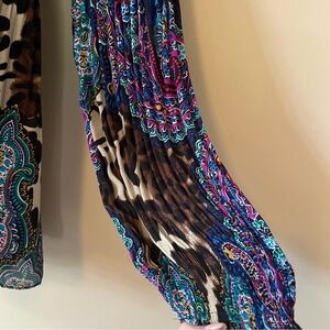 Pleated stretch top, flowy bottom. Long sleeve. Paisley and animal print.