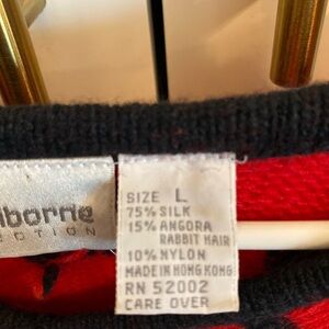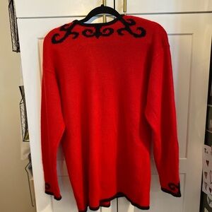 Vintage 90s Liz Claiborne Red silk Angora blend sweater black swirl embroidery.