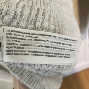 The Abercrombie & Fitch Soft Cable Knit Turtleneck Sweater is a stylish and comfortable addition to any woman's wardrobe. Made from a cozy cotton blend in a classic gray color, this sweater features a cable-knit pattern and a turtleneck neckline for a chic look. With long sleeves and a pullover style, this sweater is perfect for everyday wear and can be easily dressed up or down for any occasion. The subtle button accents add a touch of detail to this timeless piece from a trusted brand like Abercrombie & Fitch.