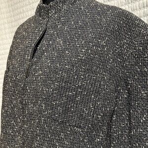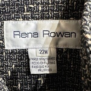 Elegant tweed blazer by Rena Rowan. Features a classic black and cream pattern. Perfect for formal or casual wear. Runs Small.
