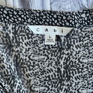 CAbi #241 Gathered Placket Sheer Blouse Womens Large ruched front animal print