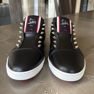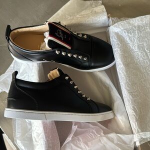 Christian Louboutin fav fique black leather slip on sneaker trainer flat sz 38.5