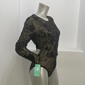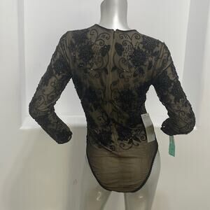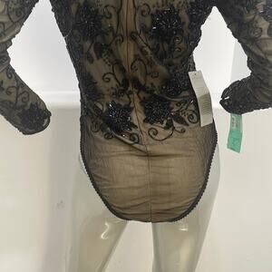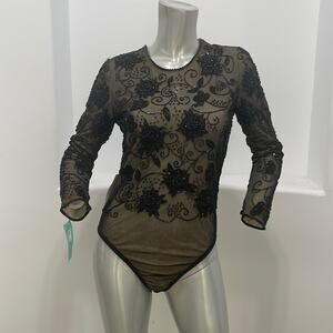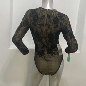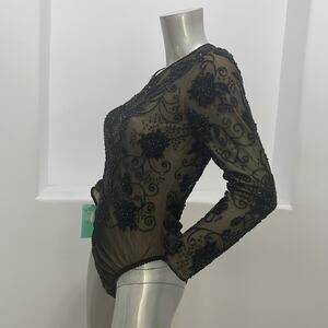 Bob Mackie Special Occasion Beaded Long Sleeve Bodysuit Black Size S