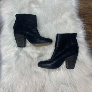Step stylish into this season and go downtown chic with these black leather ankle boots from rag & bone. Designed in a classic construction with metal zipper closure at back. Every women needs boots like these in their closet. Wear yours with basically anything from feminine to edgy items and create countless looks.