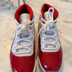 Stylish and comfortable men’s Jordans 11 Retro shoes in vibrant red and white. Perfect for active play and sports.