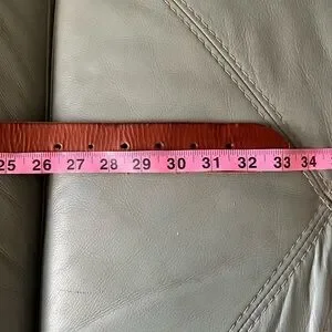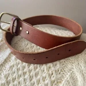 Gorgeous Cognac/Chestnut/Caramel Brown color VINTAGE Thick HEAVY Premium COWHIDE Genuine Leather Boho Preppy BRASS BUCKLE BELT Size Small-Medium. Holes from approximately 26.5-31.5” Beautiful handmade quality genuine leather (unmarked, but real) belt.
