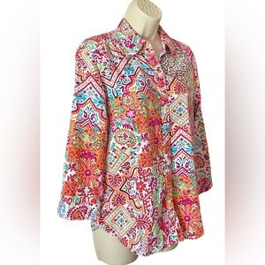 Lauren Ralph Lauren Paisley 100% Cotton Button Down Collared Blouse Shirt Size M