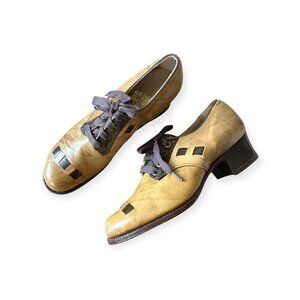 Vintage 1960s Miller Foot Defender Geometric Inlay Lace-Up Shoes – Tan, size 5