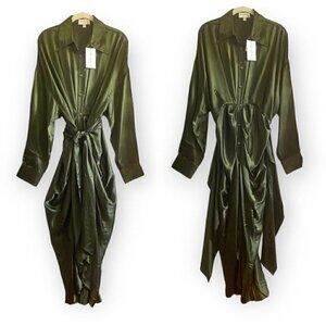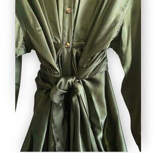 NWT Divine Heritage Silk button up dress, Dark green, Size XL