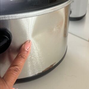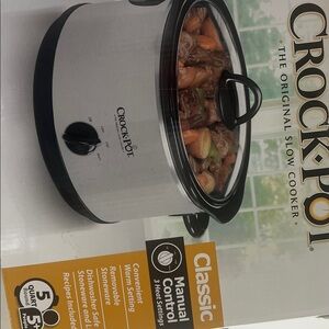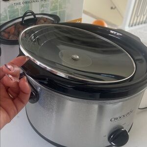 Crock-Pot slow cooker in silver and black. Ideal for easy meal preparation.