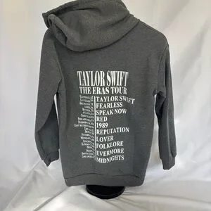Stay cozy and stylish with the Taylor Swift The Eras Tour hoodie. Featuring a classic gray color, this hoodie is perfect for fans. Show your support in comfort and style. No brand.