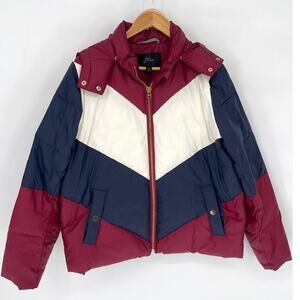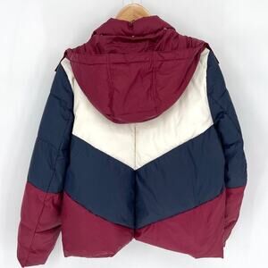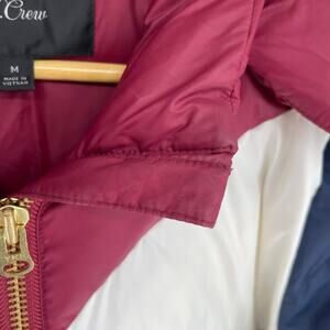 J. Crew Maroon White Blue Colorblock Puffer Jacket with Primaloft size Medium