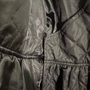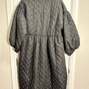 Elegant black quilted coat. Oversized fit with puff sleeves. Perfect for stylish layering.