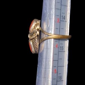 Vintage Native American Red Coral Split Shank Ring Small Size