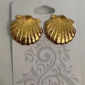 Elegant gold shell-shaped earrings. Perfect for any occasion. Vintage shell earrings. Great condition