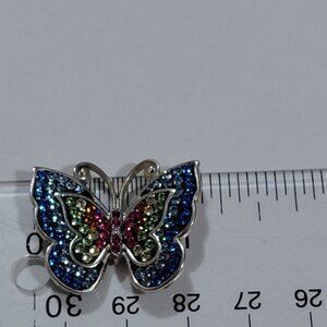 Sterling Silver Butterfly Pendant Charm 1" Multicolored Rhinestones JMC Thailand