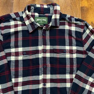 American Eagle Outfitters Vtg Flannel Button Front Plaid Navy Red Men's Large