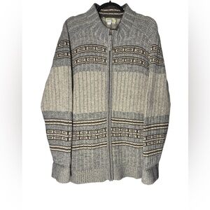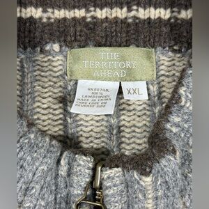 The Territory Ahead XXL Lambswool Full Zip Sweater Jacket Western Eagle Pattern Small Hole At End Of sleeve and Two very small stains shown last two pics