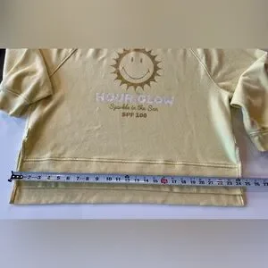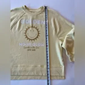 aerie yellow sweater, yellow sun sweatshirt, aerie sweater, SPF 100, graphic, crewneck, relaxed fit sweater, relaxed yellow crewneck, oversized sweater, aerie