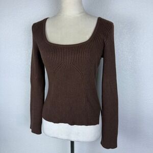Abercrombie Fitch Soft AF Ribbed Square Neck Long Sleeve Brown Sweater Top Sz Sm