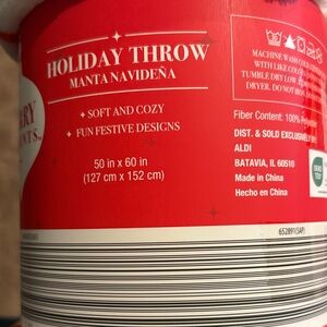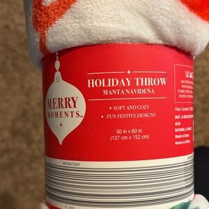 Cozy blanket featuring red bows and green trees. Perfect for holiday decor. Brand New!