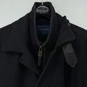 Cole Haan Men's Size XXL Classic Collared Wool-Blend Car Coat Navy