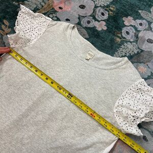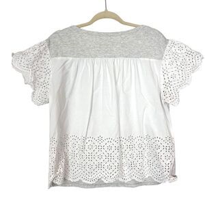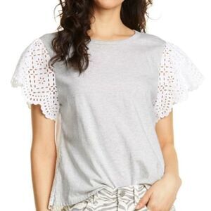 Rebecca Taylor La Vie Top Womens Large Grey Heather White Eyelet Sleeve Crewneck